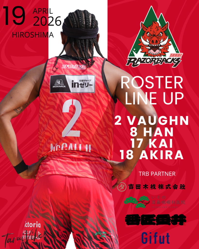 垂井レイザーバックスは、下記の通り3×3.EXE TOURNAMENT KYOTO ロスターが決定いたしましたのでお知らせいたします。